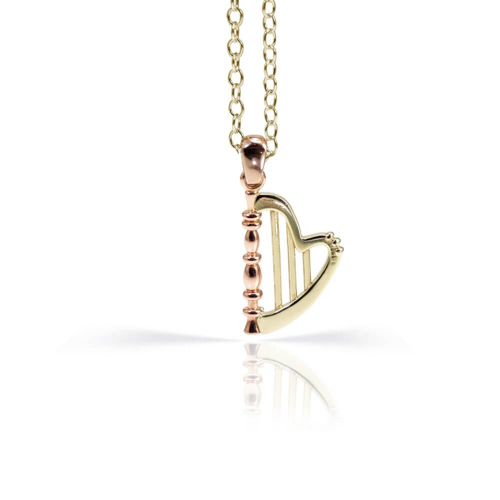 9ct Yellow & Rose Gold Celtic Harp Pendant
